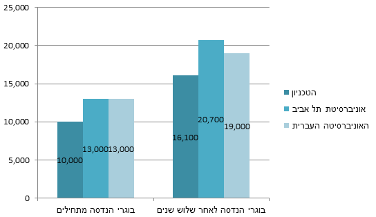 השוואת שכר בהנדסה: אוניברסיטת תל אביב, האוניברסיטה העברית והטכניון